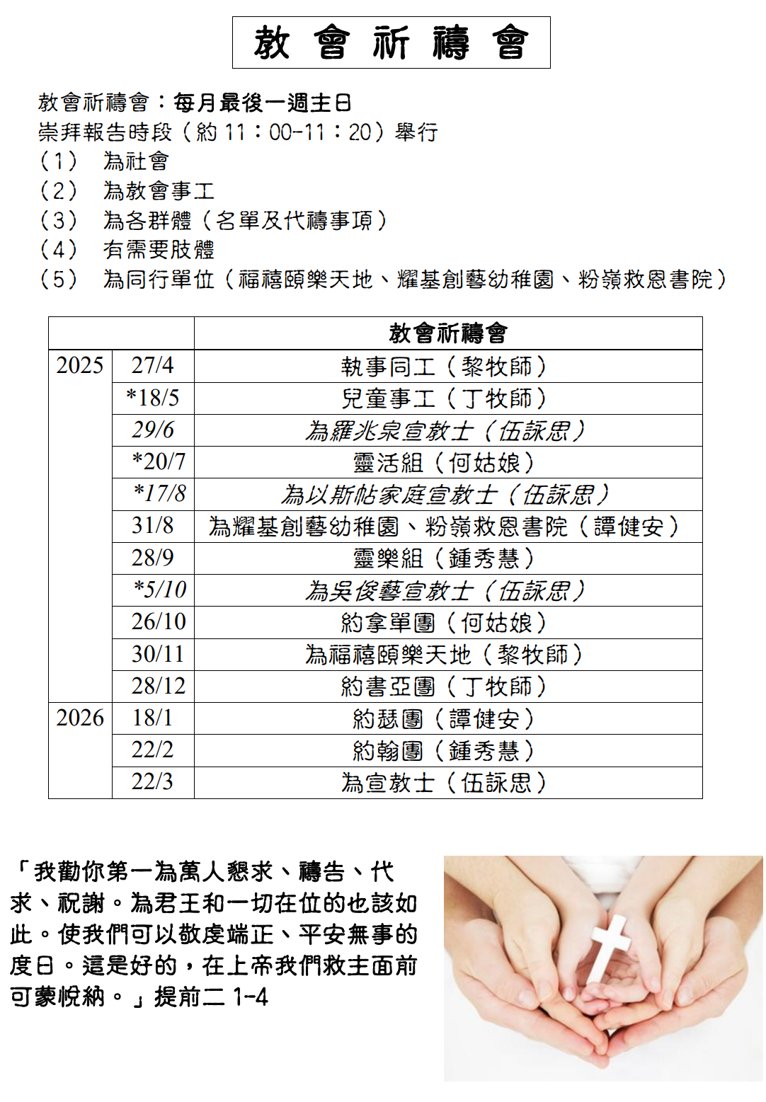 教會全年行事曆 及 奉獻事宜